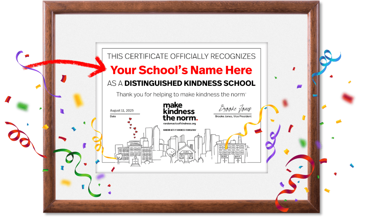 If you are using our school resources, email us at info@randomactsofkindness.org—we would love to add your school and hear how it's going.