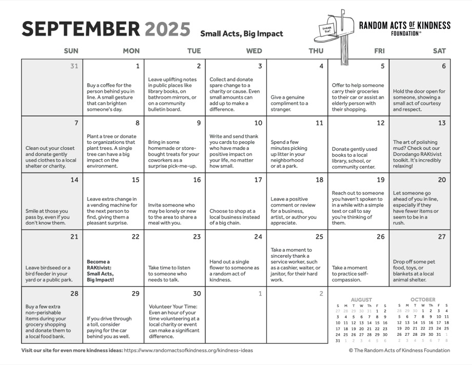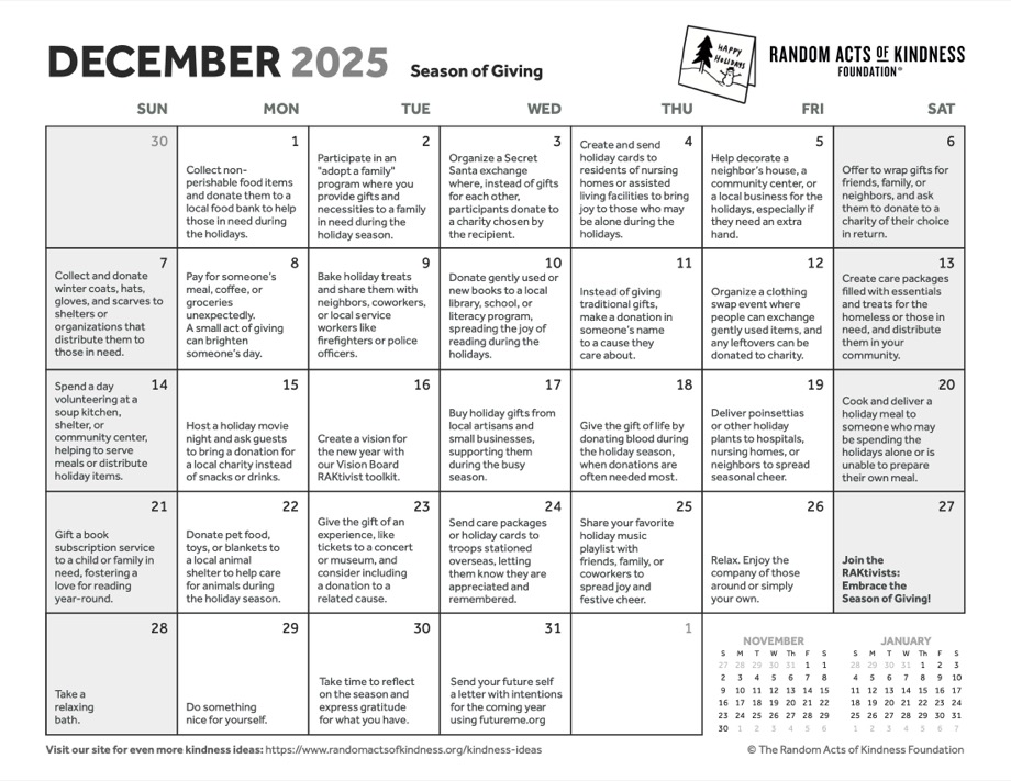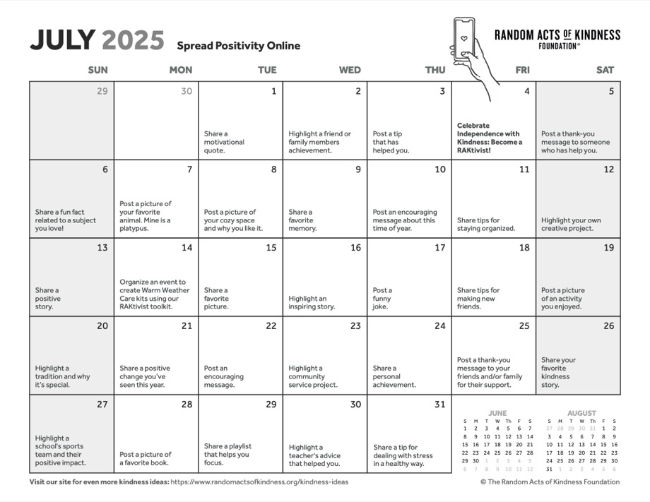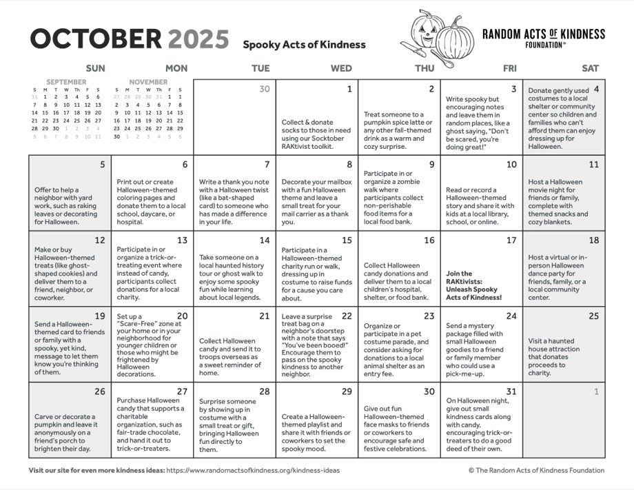 Download our new poster featuring 25 fun ways to be kind at home, work or school.