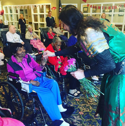 Medieval Times Myrtle Beach gives out flowers to people at a retirement home