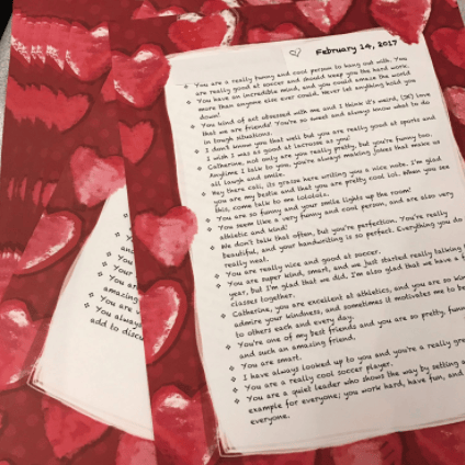 Middle schoolers in Pittsburgh wrote kind notes to their classmates, then their teacher compiled all the compliments onto one piece of paper to give to each student